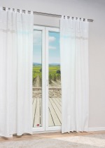 Hier sind alle Wellenlinien in Weiß gestaltet, wodurch der elegante und stilvolle Ausdruck des Gardinenschals noch unterstrichen wird. Durch das Wellenmuster und den transparenten Stoff wirkt der Dekoschal luftig-leicht und fügt sich apart in den Raum ein. Was die Kombination mit Farben angeht, haben Sie hier alle Freiheit. Die Verbindung von Blau-, Grau- und Weißtönen unterstreicht die filigrane Zartheit des Designs.