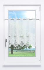 Sie wollen stilvolle Eleganz am Fenster? Wie wäre es mit diesem Schlaufenschal aus 100 % Polyester? Geschmückt ist er im oberen Bereich mit filigran gestalteten Bordüren in Blütenoptik, deren Reize sich erst bei genaueren Hinsehen offenbaren. Der obere Teil des Dekors besticht durch seinen matten Schimmer, das untere Blütenband durch die raffiniert in den Stoff gebrachten, netzartigen Cut Outs, die mit dem Rest des Gewebes eine harmonische Verbindung eingehen. Bei einfallender Sonne spielt der akkurat gesäumte Stoff effektvoll mit Licht und Schatten, schützt darüber hinaus zuverlässig Ihre Privatsphäre, sowohl am Tage als auch bei eingeschalteter Zimmerbeleuchtung. Die oben eingearbeiteten Schlaufen gewährleisten nicht nur einen schönen Fall am Fenster, damit wird auch die Befestigung des Schals an der Gardinenstange zum Kinderspiel. Gereinigt werden kann der Vorhang im Schonwaschgang der Maschine bei 30°C.